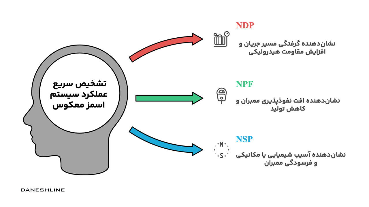 به گرفتگی مسیر جریان و افزایش مقاومت هیدرولیکی اشاره دارد. NDP نشان میدهد برای عبور دادن همان دبی از ممبران، تحت شرایط مرجع، چه مقدار فشار اضافی لازم است.